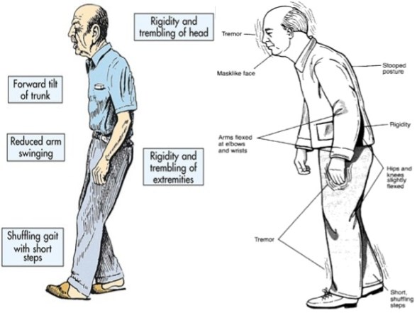 Sketch of a man with PD with the typical features
