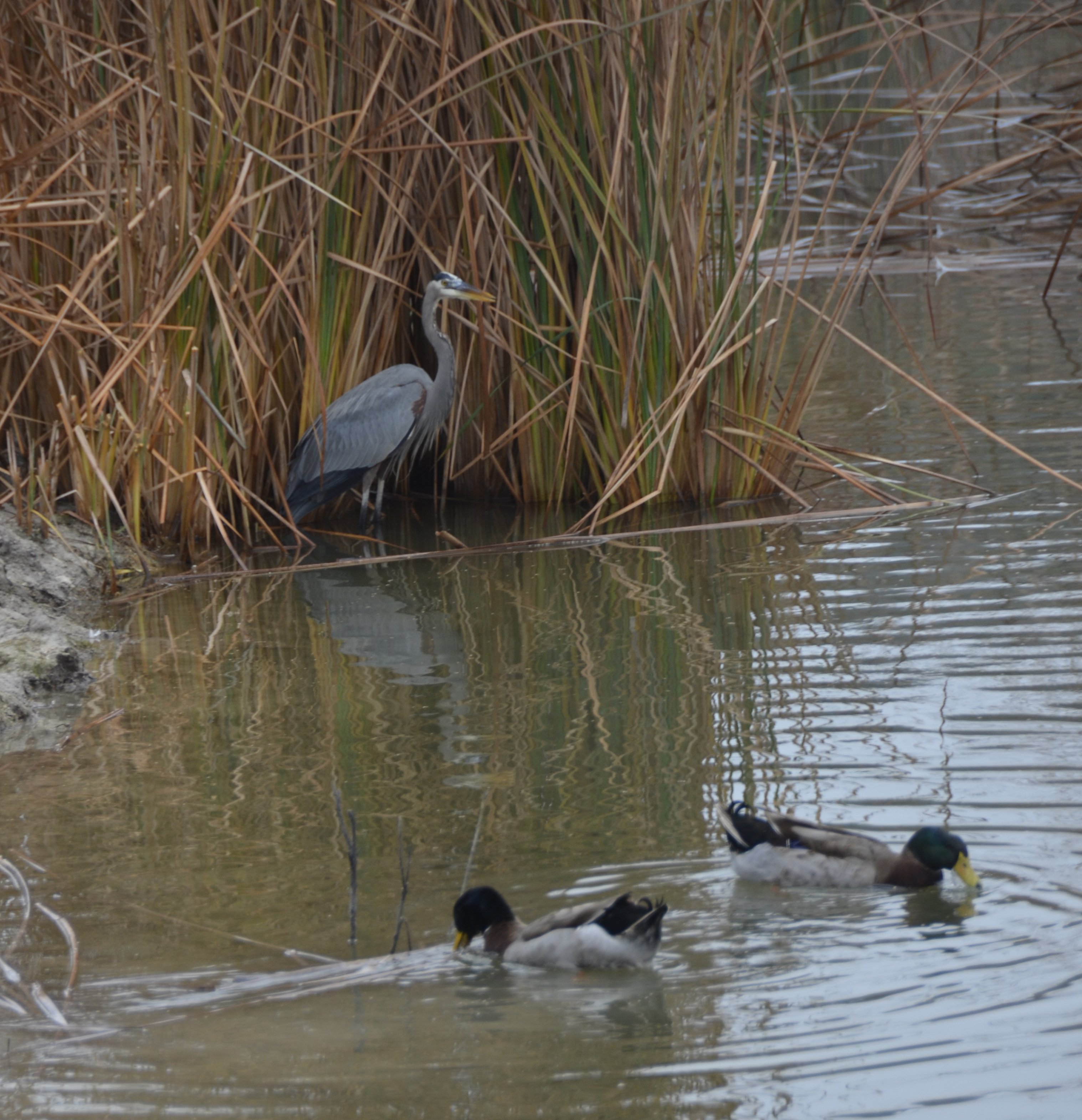 Heron according to folklore is good luck. The ducks have proven less successful because of predators