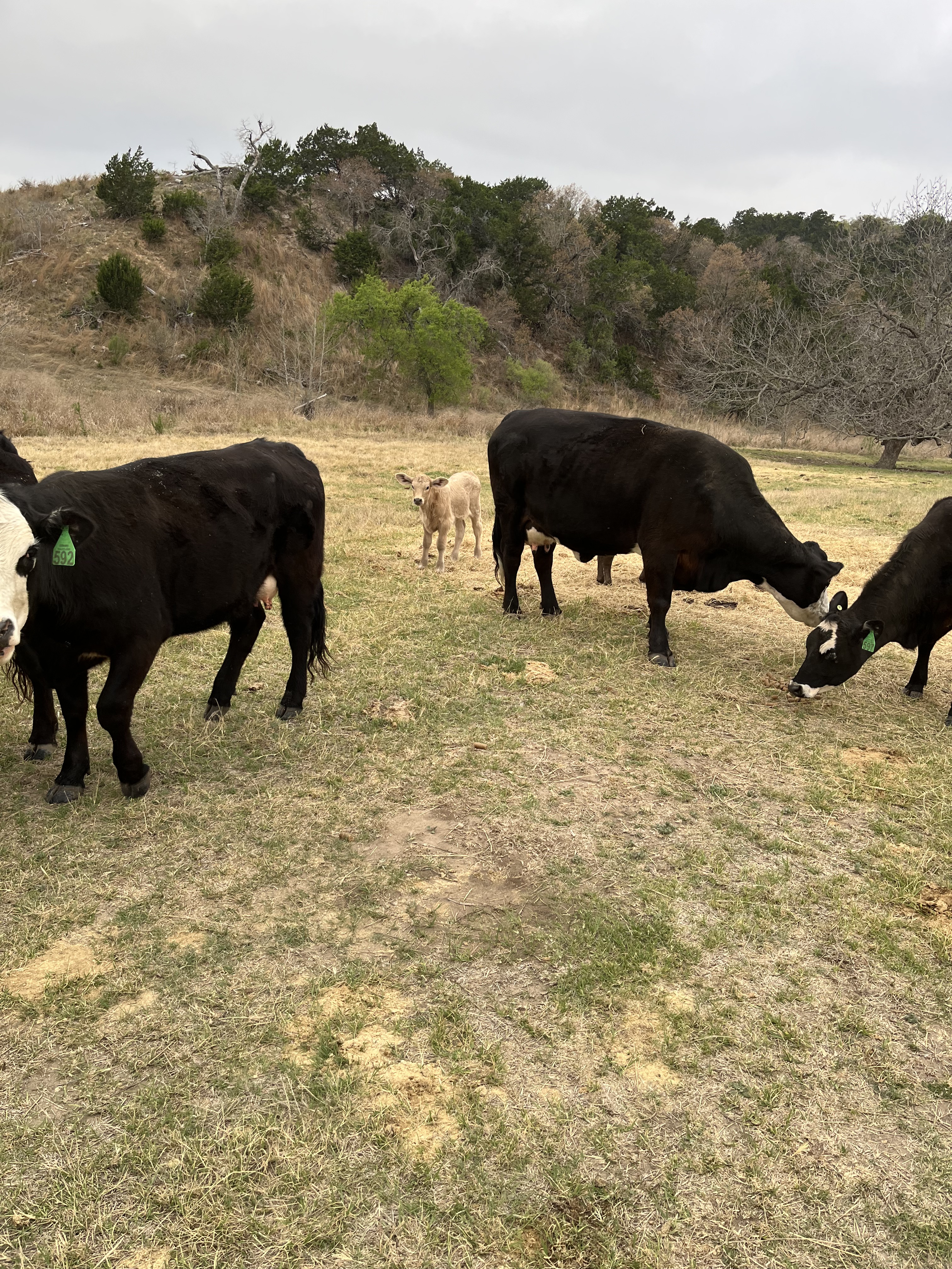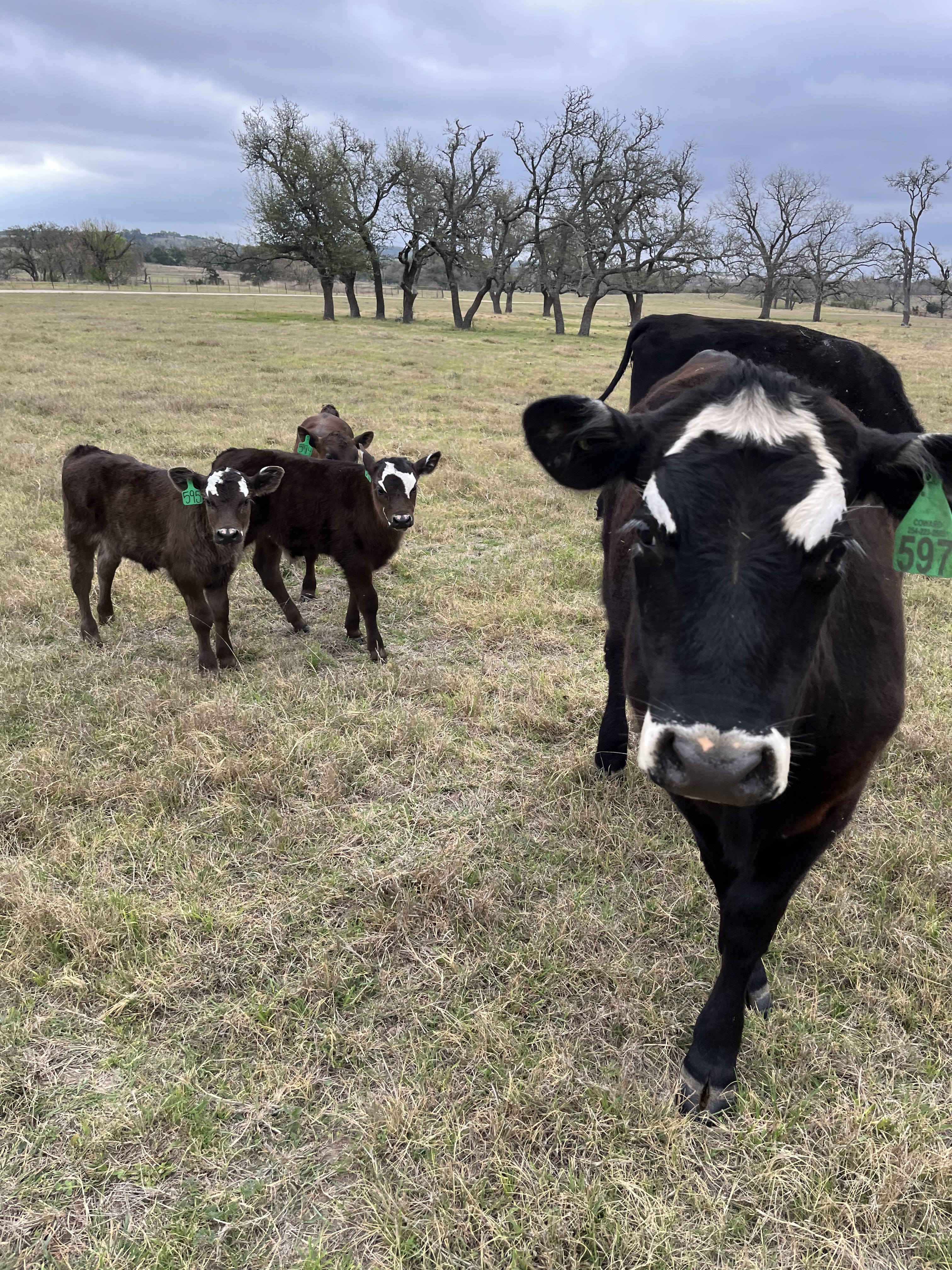 Intermingling of the mothers from both herds and a smokey calf with several of the black baldy calves