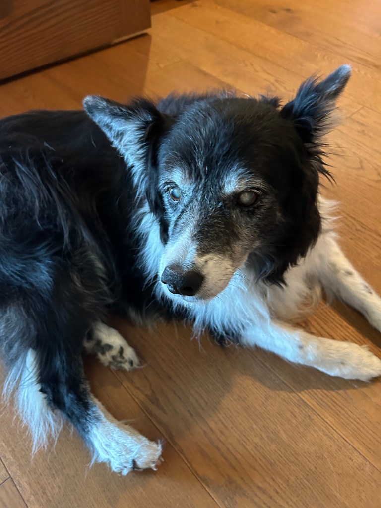I recall an earlier Border collie of ours named Molly who grew old and ill. The vet assumed she had cancer but she was still up and about and enjoying life to some extent. Shortly after seeing the vet, I awoke in the morning and found Molly dead on the floor not far from me. Molly accepted her illness with great stoicism, a strong trait in Border collies. The vet was embarrassed and regretted not offering to put her down earlier. I felt there was no need for his embarrassment, having witnessed the incredible stoicism of my serial Border collies.